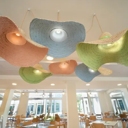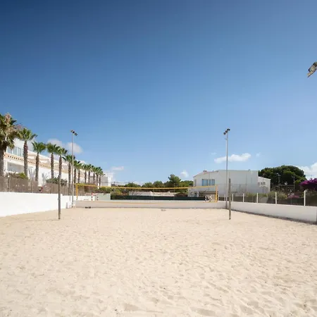Las instalaciones de playa del Hostal Mistral incluyen quitasoles.